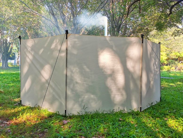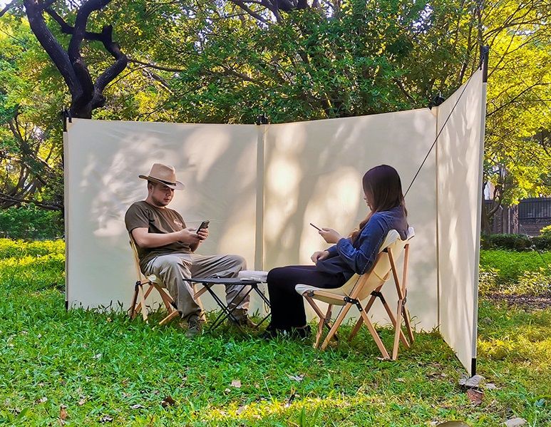 Ветрозащита предназначена для защиты от несильного ветра, косого дождя или мороси, можно использовать вместе с тентом, также можно добавить немного уединения от соседей отгородившись на пляже.