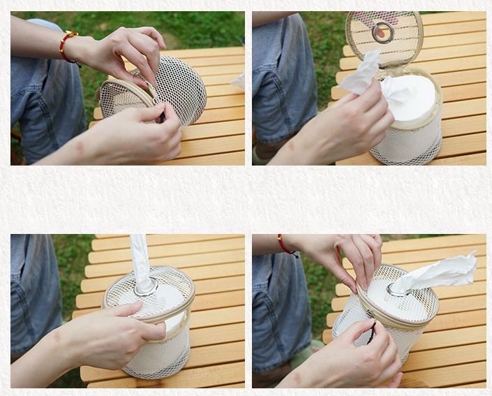 Полезная вещь в вашем на кемпинге, с ним удобно хранить и использовать туалетную бумагу.