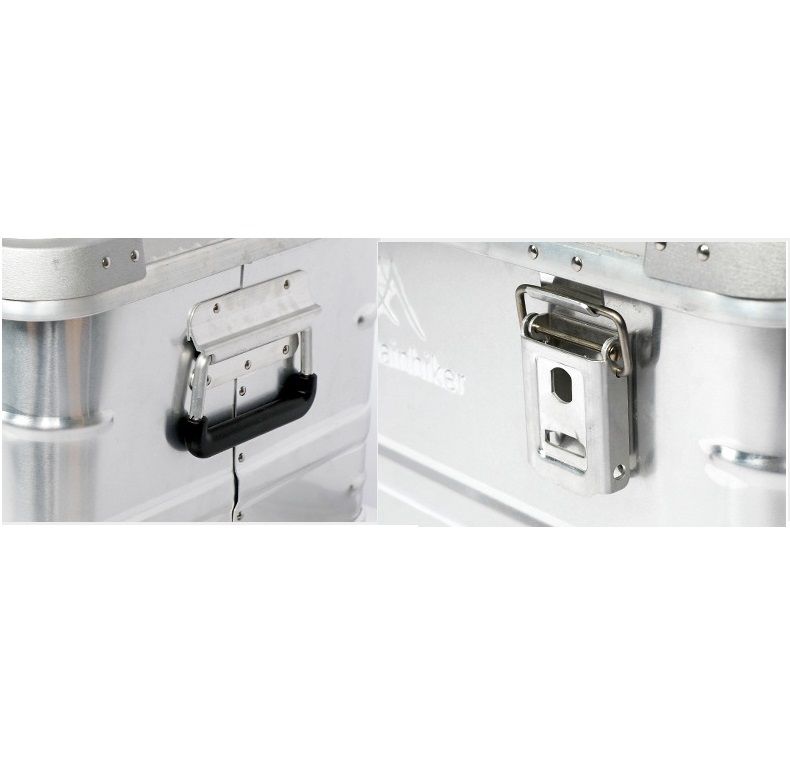 Алюминиевый ящик для кемпингового снаряжения или продуктов. Также послужит мини столиком. Два замка с защелками обеспечивают надёжное закрытие и достаточную плотность прилегания крышки к уплотнительной резинке, металлические ручки для удобной переноски ящика, сверху имеются специальные накладки благодаря которым можно зафиксировать ящик поставленный сверху.