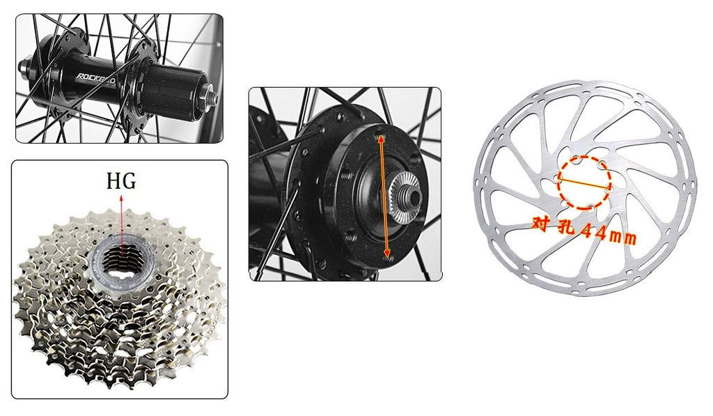 Обод: Двойной ROCKBAO 32 отверстия Втулка ROCKBAO на насыпных подшипниках HG Барабан Втулка под Эксцентрик Крепление под дисковый тормоз Посадочные: 135*9 мм Ниппель AV (авто)