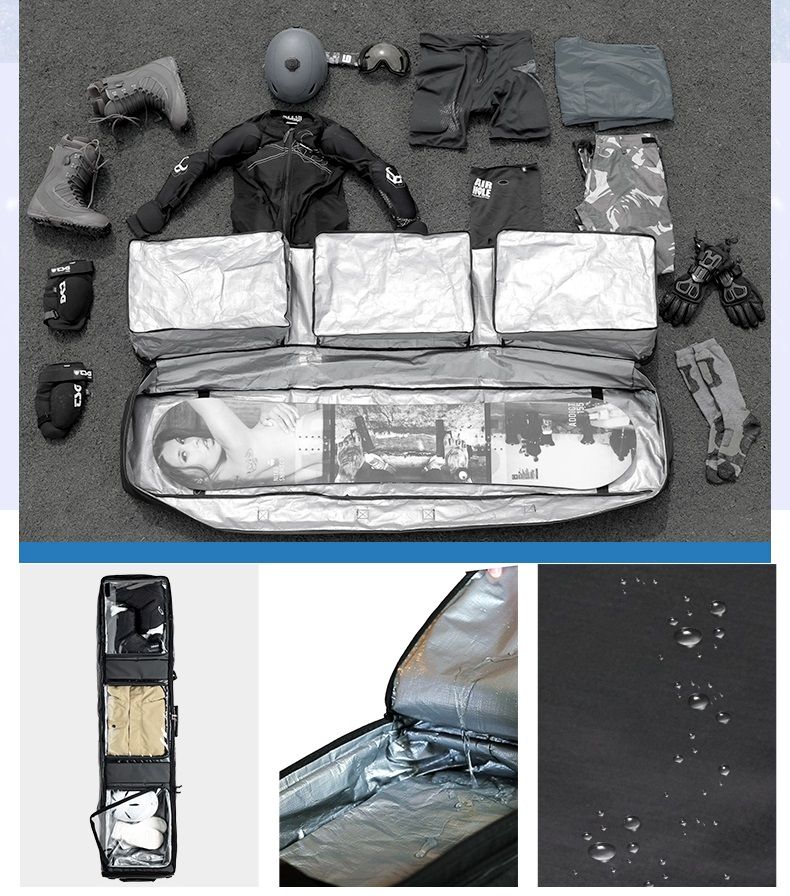 Чехлы LDski Вас приятно порадуют улучшенным дизайном и большим выбором цветовых решений. Сверхпрочный водоотталкивающий внешний материал чехла, устойчив к температурам до -35 градусов. Внешний водонепроницаемый и износопрочный материал чехла, выполнен из ПВХ и полиэстера 900D с покрытием из ТПУ. Три просторных отделенных отсека, в которые можно поместить весь комплект горнолыжного оборудования (лыжи-сноуборд, обувь, шлем, куртка, штаны, термобелье) и личные вещи. При этом разделение на влажные и сухие секции, предотвращает попадание снега или воды из вашего снаряжения в сухую одежду. Чехол оснащен прочными замками, которые надежно защитят содержимое при перевозке. Внутри имеется маленький карман для хранения мелочи. Чехол можно переносить с помощью лямок, как рюкзак, которые спрятаны в дополнительном кармане с обратной стороны чехла. Можно нести при помощи четырех ручек расположенных с боку и на лицевой стороне чехла или буксировочной ручки и колес. Мягкий ремень для ношения через плече, очень удобный, даже для длительного ношения. На чехле установлены полиуретановые колеса с подшипниками для безотказной работы в любых условиях и рассчитаны на большие нагрузки в морозных условиях. Чехол снабжен специальной системой крепежа лыж или сноуборда. Она включает: специальный набор застежек и стяжек на липучках, для надежного крепления лыж или сноуборда. Чехлы снабжены фурнитурой высокого качества Duraflex. Пряжки обладают отличной гибкостью при низкой температуре. Благодаря всему этому чехлы LDski отлично подходят для перелетов и путешествий на горнолыжные курорты. Комплект: чехол, комплект липучек для лыж и комплект для сноуборда.