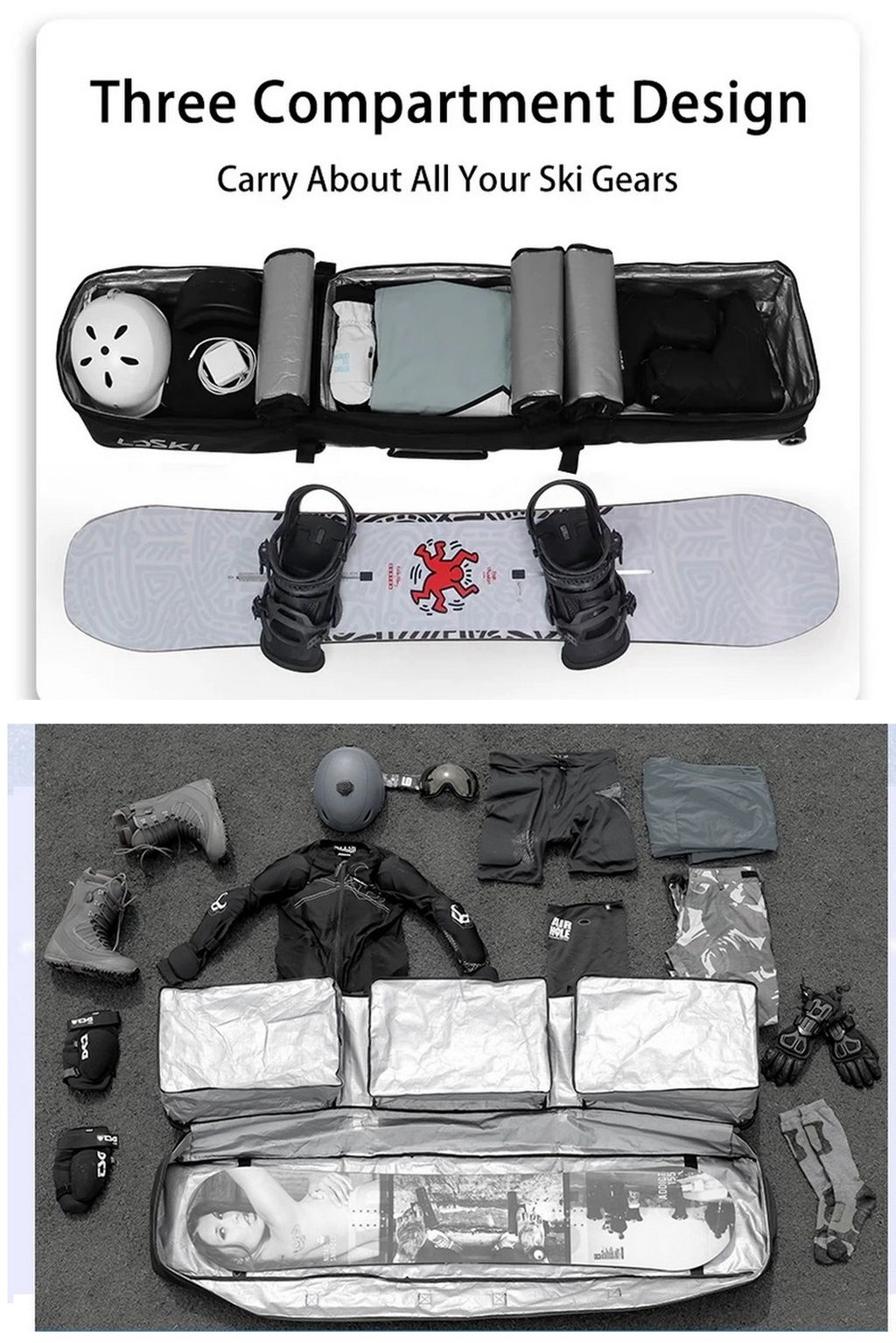 Чехлы LDski Вас приятно порадуют улучшенным дизайном и большим выбором цветовых решений. Сверхпрочный водоотталкивающий внешний материал чехла, устойчив к температурам до -35 градусов. Внешний водонепроницаемый и износопрочный материал чехла, выполнен из полиэстера 900D. Три просторных отделенных отсека, в которые можно поместить весь комплект горнолыжного оборудования (лыжи-сноуборд, обувь, шлем, куртка, штаны, термобелье) и личные вещи. При этом разделение на влажные и сухие секции, предотвращает попадание снега или воды из вашего снаряжения в сухую одежду. Чехол оснащен прочными замками, которые надежно защитят содержимое при перевозке. Внутри имеется маленький карман для хранения мелочи. Чехол можно переносить с помощью четырех ручек расположенных с боку и на лицевой стороне чехла или буксировочной ручки и колес. На чехле установлены полиуретановые колеса с подшипниками для безотказной работы в любых условиях и рассчитаны на большие нагрузки в морозных условиях. Чехол снабжен специальной системой крепежа лыж или сноуборда. Она включает: специальный набор застежек и стяжек на липучках, для надежного крепления лыж или сноуборда. Чехлы снабжены фурнитурой высокого качества Duraflex. Пряжки обладают отличной гибкостью при низкой температуре. Благодаря всему этому чехлы LDski отлично подходят для перелетов и путешествий на горнолыжные курорты. Комплект: чехол, комплект липучек для лыж и комплект для сноуборда.