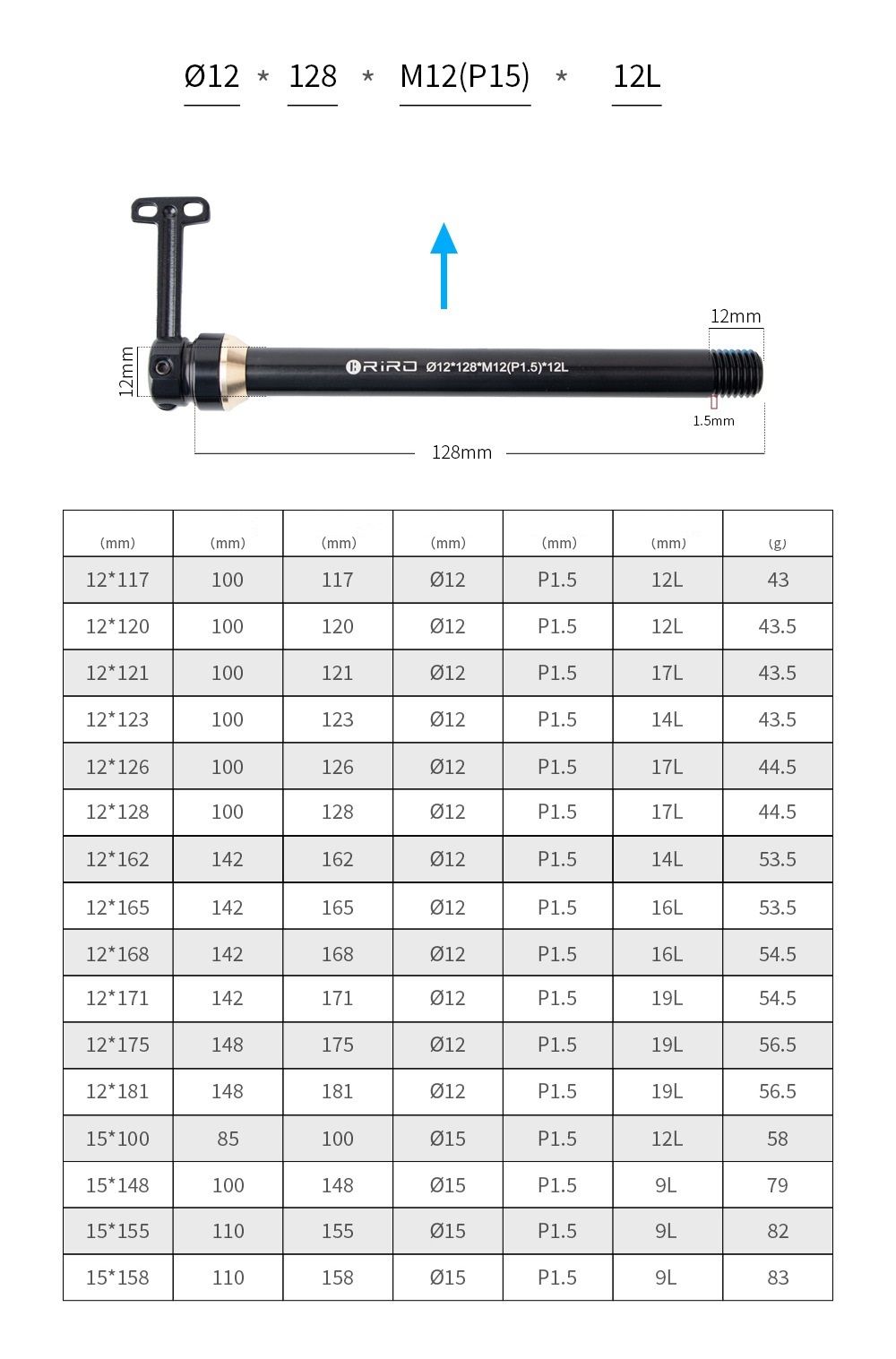 Ось RIRO TZG -01 со скрытым рычагом (12*148mm(L175mm*M12*P1.5*L19))
