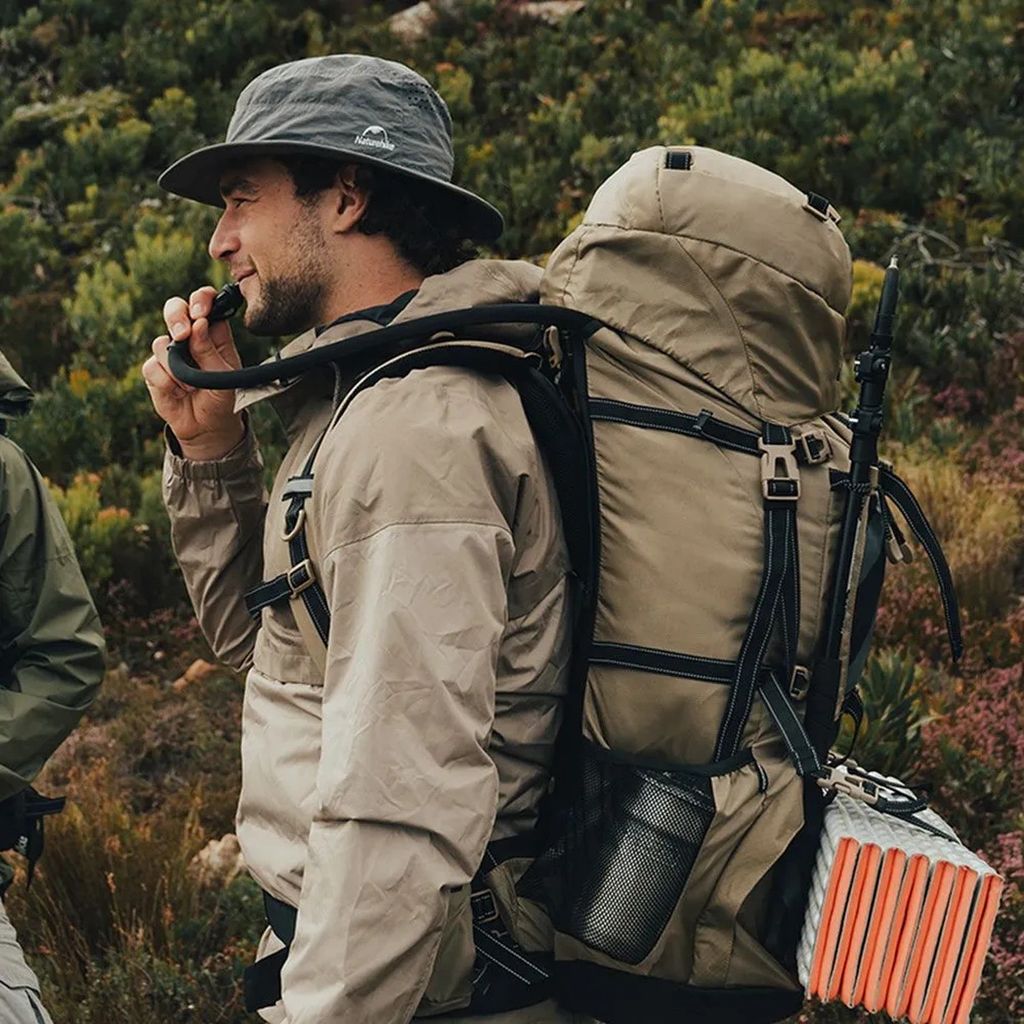 Naturehike NH70B070-B совместим с питьевой системой, что добавляет удобства во время треккинга. Шланг для питья можно провести через специальное отверстие и закрепить на лямке. Такая конструкция позволяет вам не останавливаться каждый раз для того, чтобы достать бутылку с водой. Размеры рюкзака составляют 75 x 33 x 27 см. Весит рюкзак 1,75 кг.