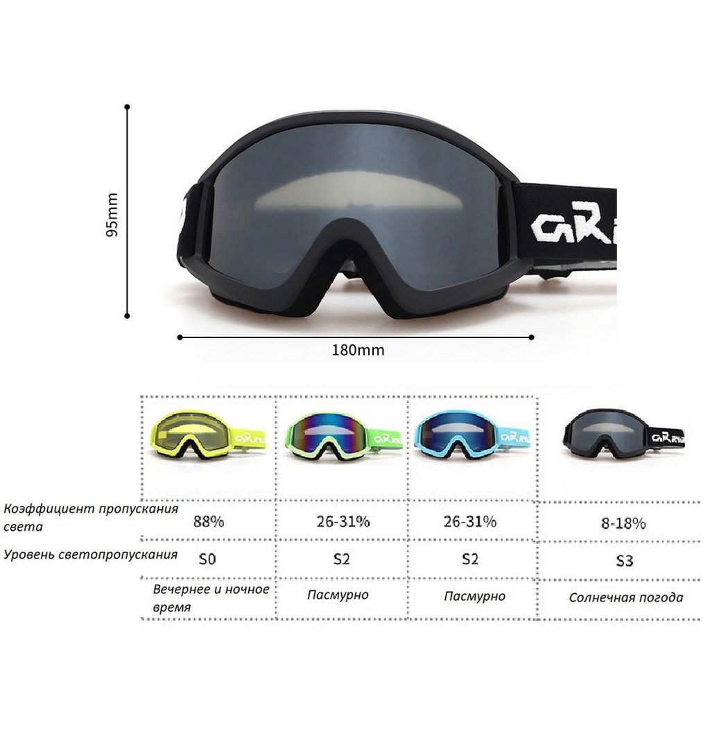 - Маска имеет двойное стекло Защита от ультрафиолета 400UV Возможность носит с очками Вес:*** гр