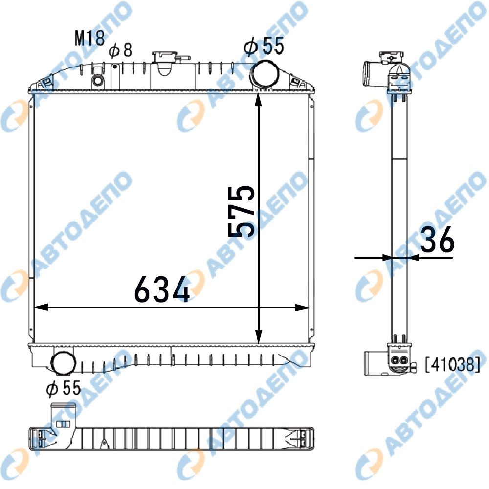 Радиатор охлаждения двигателя. ISUZU, NISSAN ELF, ATLAS NKR66, BKR69, AKR69, NKR69, BRK69EA, AKR69EA, NHR69EAV IS-0055-36-MT-K