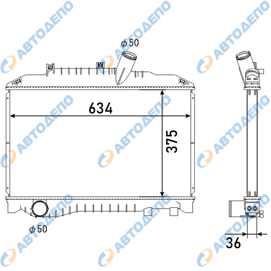 Радиатор охлаждения двигателя. ISUZU, MAZDA, NISSAN ELF, TITAN, ATLAS AKR81EP, AKS1G, APR71LV, BPR71LR, ARR66LR, AKS81EA, AKS81GR, NKR66, NPR71LV, NKR71EP, NKR81AN, NKR82N, NPR81P, LKR81 IS-0056-36-MT-K