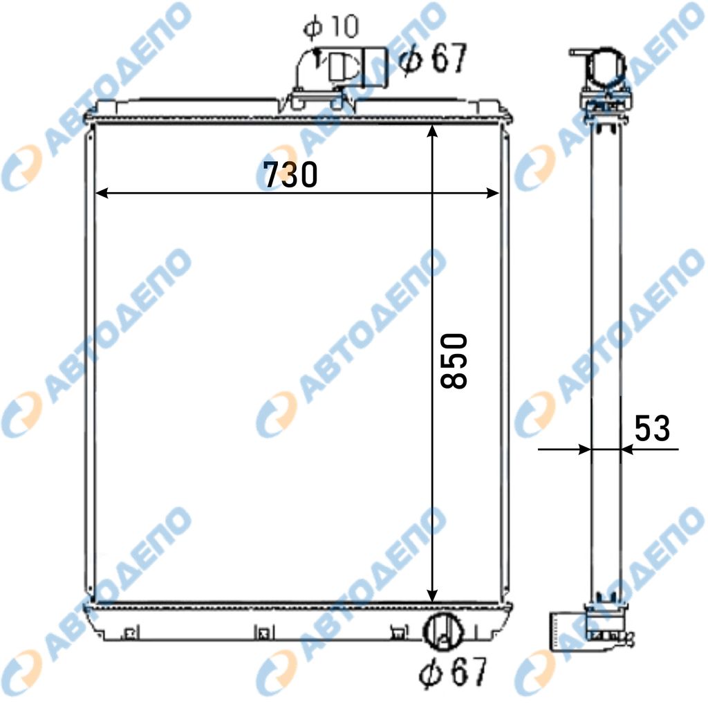 Радиатор охлаждения двигателя. ISUZU, NISSAN ELF, ATLAS KK-NKR66 / NKR66, BKR69, AKR69, NKR69, BRK69EA, AKR69EA, NHR69EAV IS-0055-36-MT-K