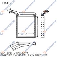 Радиатор отопителя TOYOTA COROLLA, AXIO, FIELDER, COROLLA RUMION, WISH, AURIS, PRIUS, RAV4, HR-116-26-K