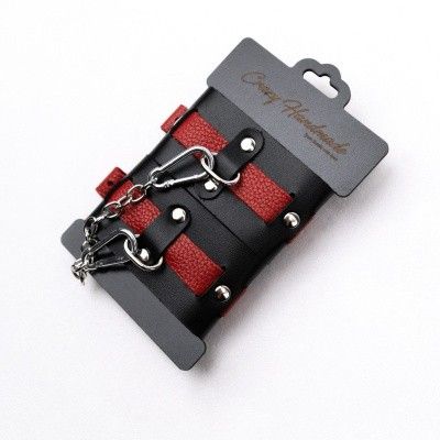 НАРУЧНИКИ ИЗ ЧЕРНОЙ КОЖИ С КРАСНЫМ РЕМНЕМ, арт. CH-1120