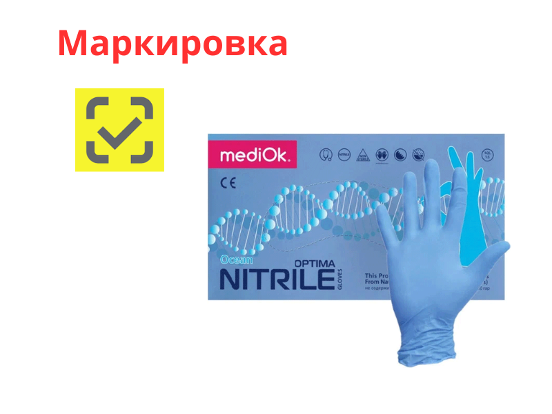 Перчатки MediOK смотровые нитриловые Nitrile Optima неопудренные текстурированные нестерильные, цвет голубой, размер L, 50 пар/упак., Китай ("Blue Sail Medical Co., Ltd.")
