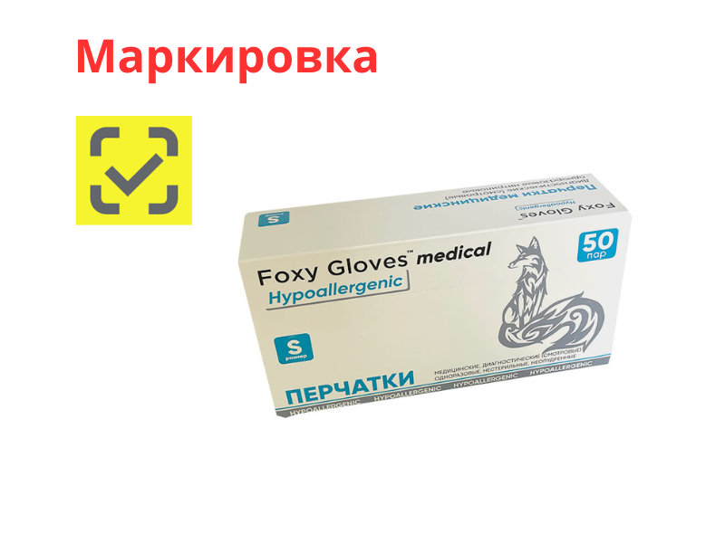 Перчатки Foxy-Gloves смотровые нитриловые, неопудренные, нестерильные, цвет голубой, размер S, 50 пар/упаковка, Китай ("Жонхон Пулин Продактс Ко., Лтд.")