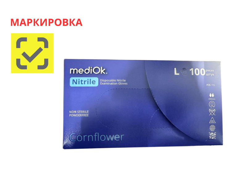 Перчатки MediOK смотровые нитриловые неопудренные текстурированные нестерильные, цвет сиреневый (Cornflower), размер L, 50 пар/упак., Китай ("Блю Сейл Медикал Ко., Лтд.")