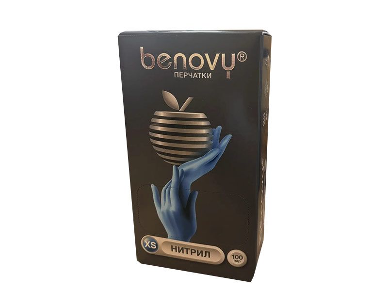 Перчатки медицинские диагностические (смотровые) одноразовые нестерильные "Benovy" нитриловые текстурированные на пальцах, неопудренные с однократной хлоринацией (манжета с валиком), цвет голубой, размер XS, 100 пар/упаковка, Малайзия ("Топ Глав Сдн. Бхд.")