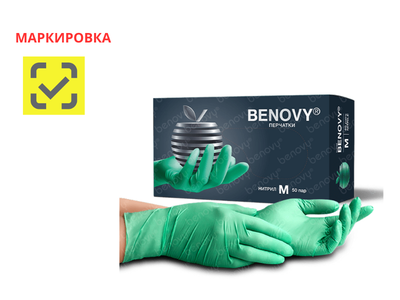 Перчатки Benovy смотровые нитриловые неопудренные нестерильные (текстурированные), зеленые, размер М, 50 пар/упаковка, Малайзия ("Топ Глав Сдн. Бхд.")