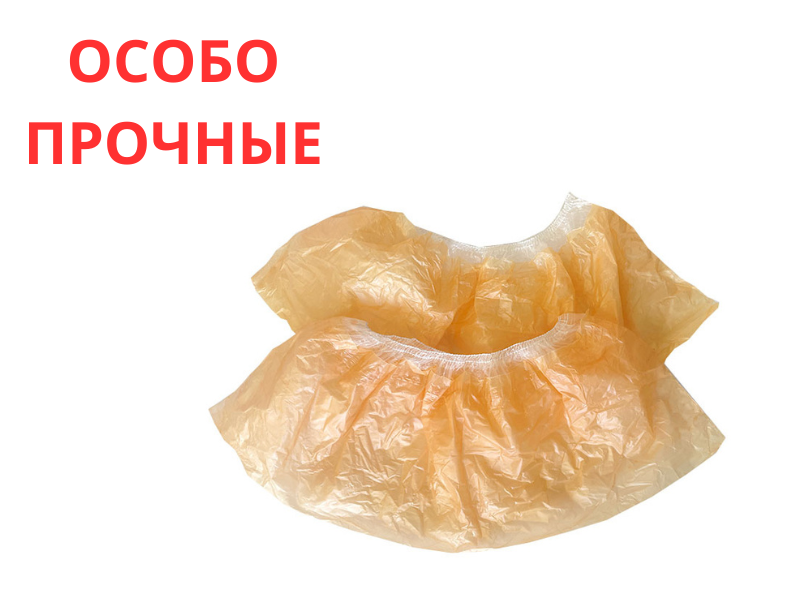 Бахилы "Прочные Плюс" полиэтиленовые (вес 7 грамм), одноразовые, с двойной подошвой, цвет бело-оранжевый, 100 пар/упаковка, Россия (ООО "Юг-Восток")