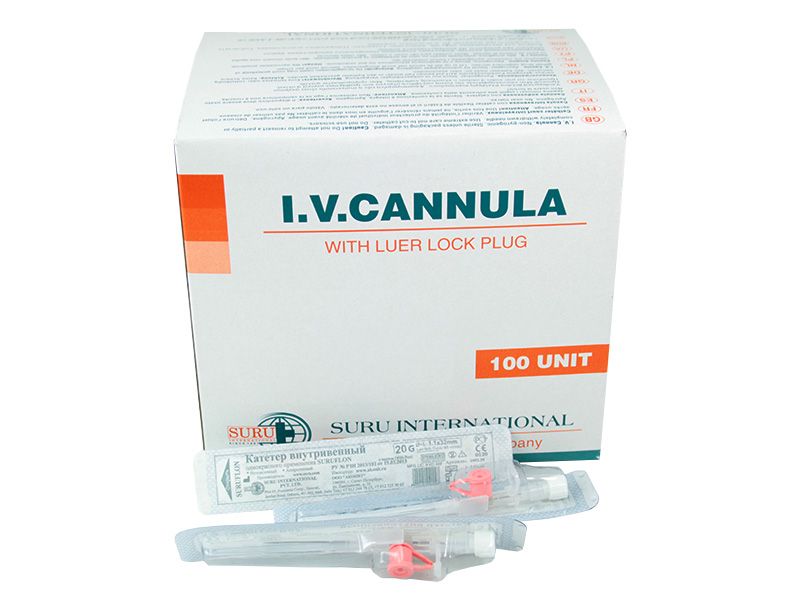Катетер внутривенный однократного применения Suruflon, 20G (с крыльями и дополнительным портом), в упаковке 100 шт., Индия (SURU INTERNATIONAL PVT. LTD.) 100/1000