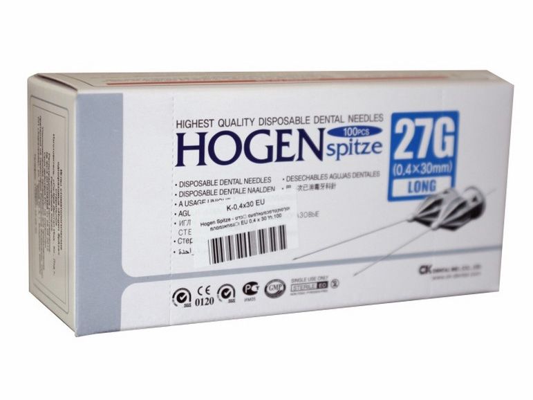 Игла карпульная одноразового применения Hogen Spitze, 27G(0,4)*30 мм, 100 шт/упак, Корея (C-K Dental IND. CO)