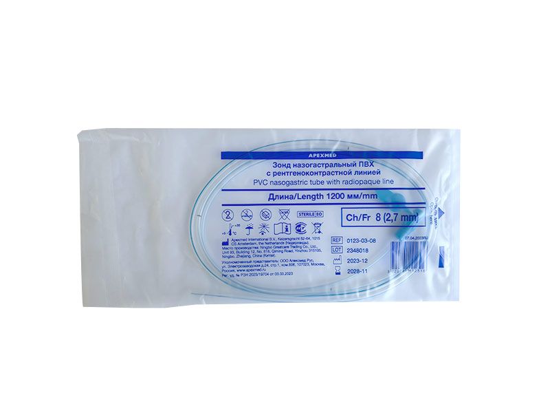 Зонд назогастральный Apexmed СН/FR08, 120 см. С РКЛ, одноразовый, стерильный, в упаковке 60 шт, Нидерланды (Apexmed International B. V.) 0123-03-08