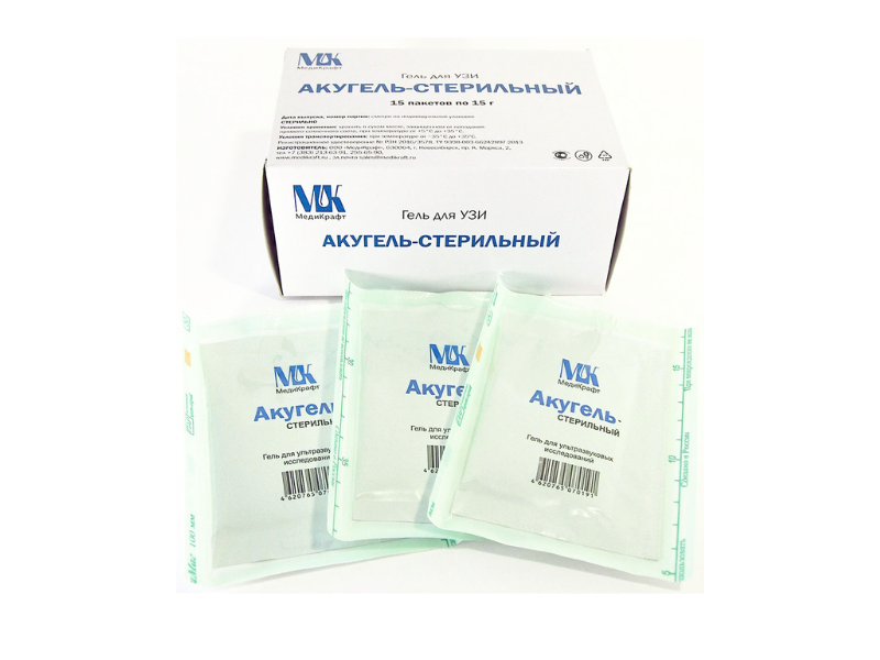 Гель для УЗИ "Акугель-Стерильный", масса геля нетто 15 г/пакет, (вариант исполнения 3), 15 пакетов/упаковка, Россия (ООО "МедиКрафт")