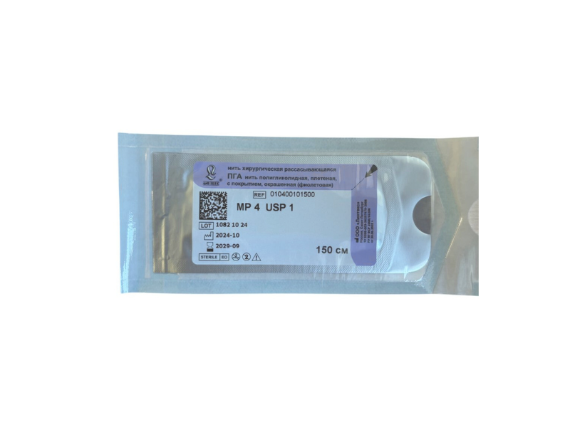 ПГА плетеный фиолетовый МР(4), USP(1), длина 150 см, без иглы, Россия (ООО "Линтекс") 010400101500