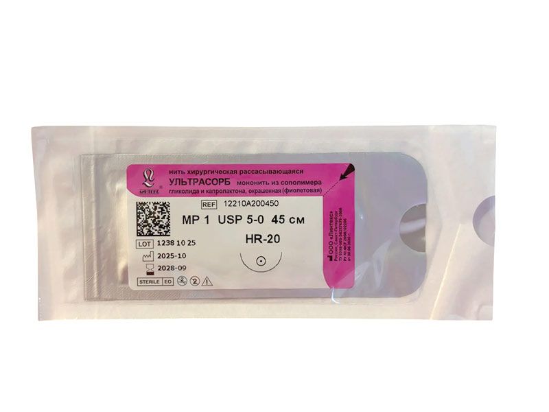 Ультрасорб фиолетовый, МР(1) USP(5/0), длина 45 см, игла колющая HR-20, 1/2 окружности, Россия (ООО "Линтекс") 12210A200450
