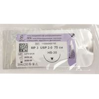 Ультрасорб фиолетовый, МР(2) USP(3/0), длина 75 см, игла обратно-режущая HS-20, 1/2 окружности, Россия (ООО "Линтекс") 12220B200750