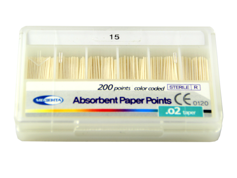 Штифт Медента эндоканальный абсорбирующий бумажный, рр №15, кон. 02, 200 шт/упак., Корея ABS15 P21