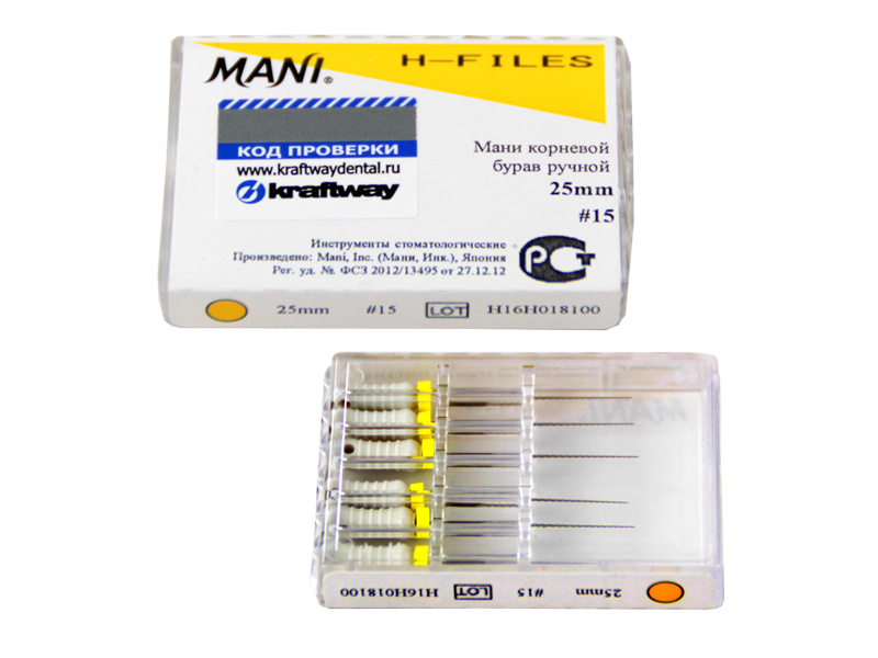 Бурав корневой ручной Мани (Mani H-Files) №15, длина 25 мм, ISO-15, 6 шт/упаковка, Япония (Mani, Inc.) 0332003М