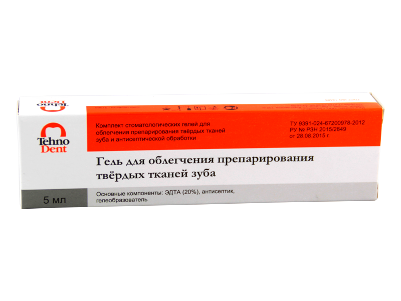 Гель ЭДТА 20% для расширения каналов. Комплект стоматологических гелей для облегчения препарирования твердых тканей зуба и антисептической обработки, 5 мл, Россия (ООО "ТехноДент") 024-01-005