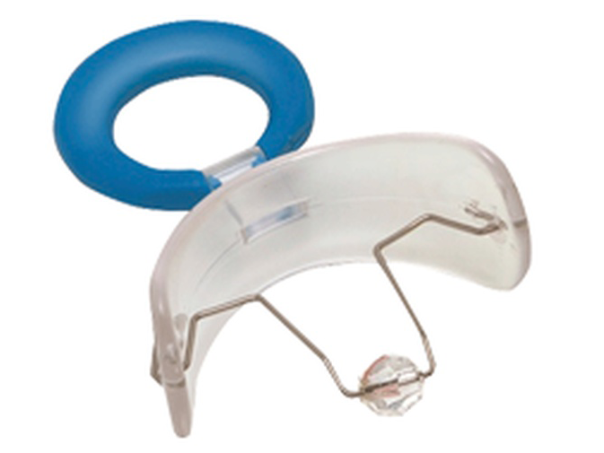 Бусинка, закреплённая на проволоке, удерживает язык в физиологически правильном нёбном положении и одновременно стимулирует корень языка, поскольку ребенок при каждом глотательном движении инстинктивно раскатывает бусинку языком по твердому небу, стимулируя, таким образом, тонус язычной мышцы. С этой пластинкой знакомы и работают уже многие логопеды.