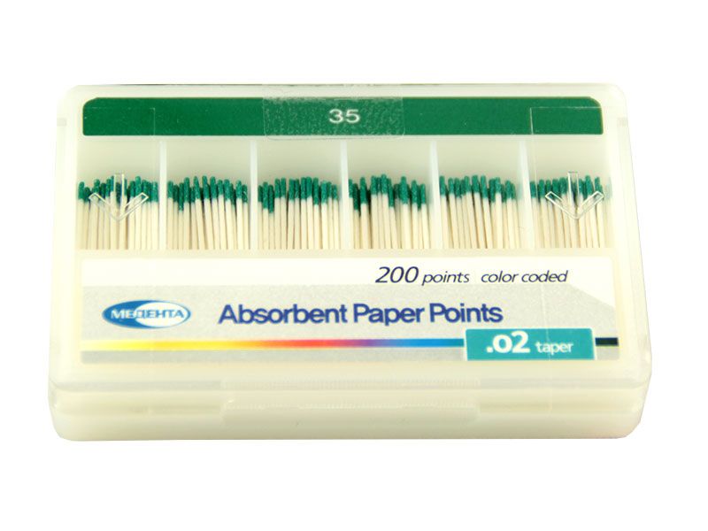 Штифт Медента эндоканальный абсорбирующий бумажный, размер №35, конусность специальная 02, 200 шт/упаковка, Республика Корея (Meta Biomed Co., Ltd.)