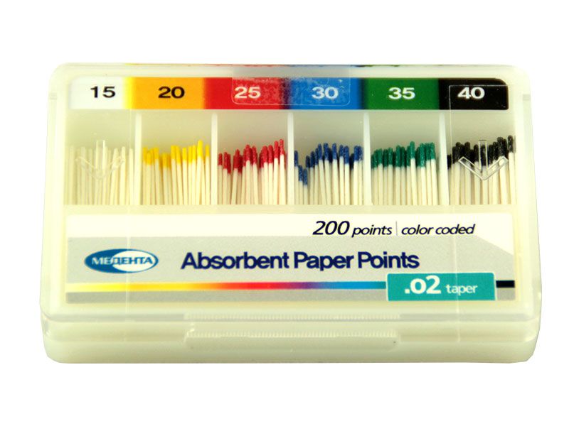 Штифт Медента эндоканальный абсорбирующий бумажный, рр №15-40, кон. 02, 200 шт/уп., Meta Biomed