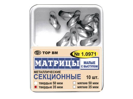 Матрицы металлические секционные (малые с выступом), твердые 35 мкм, 10 шт/упаковка, Россия (ООО "ТОР ВМ") 1.0971(т35)