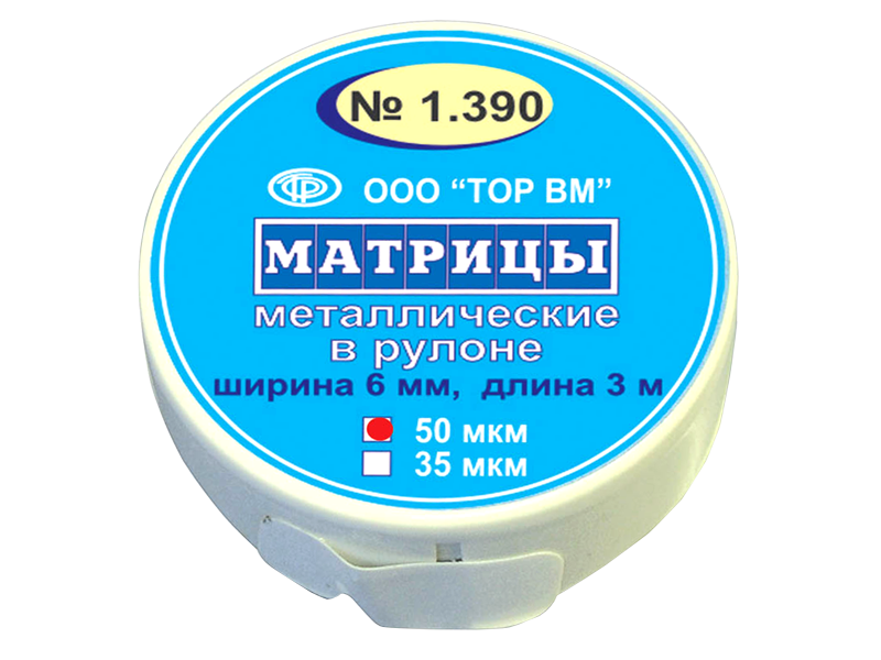 Матрицы металлические в рулоне, толщина 50 мкм, 6 мм*3 м, Россия (ООО "ТОР ВМ") 1.390