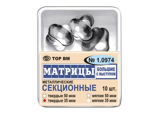 Матрицы металлические секционные (большие с выступом), твердые 35 мкм, 10 шт/упаковка, Россия (ООО "ТОР ВМ") 1.0974(т35)
