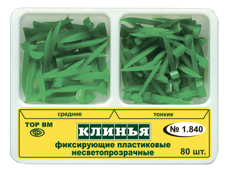 Клинья фиксирующие пластиковые (2-х типов: зеленые, несветопрозрачные), 80 шт/набор, Россия (ООО "ТОР ВМ") 1.840