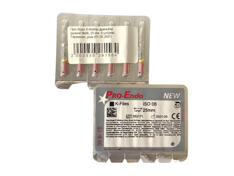 Про-Эндо К-Файлы дрильбор ручной (Pro-Endo K-Files)) №06, длина 25 мм, 6 шт/упаковка, Германия (VDW GmbH)