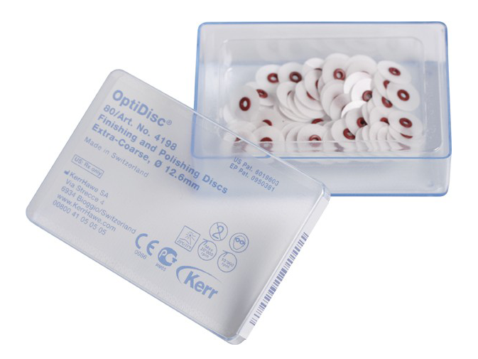 Диски полировочные OptiDisc грубые, диаметр 12,6 мм для шлифования и полирования (бордовые), 80 шт/упаковка, Швейцария (KerrHawe S.A.) 4198