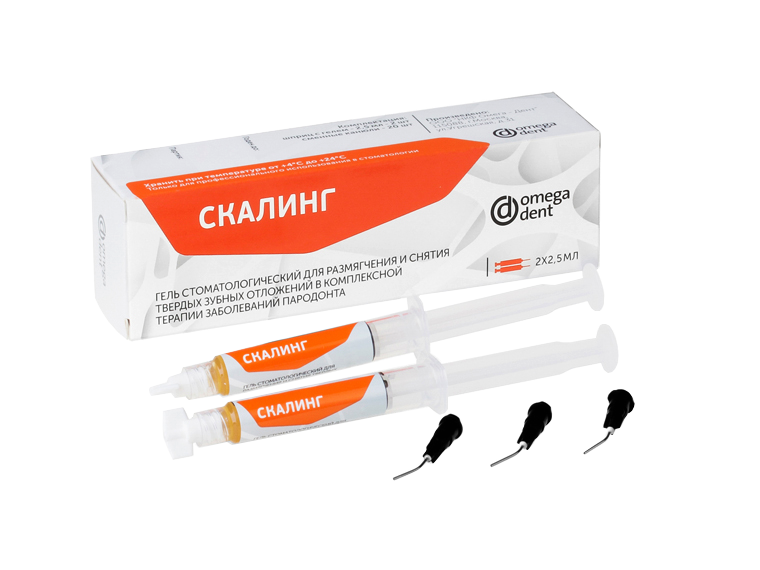 Гель стоматологический Скалинг для размягчения и снятия твёрдых зубных отложений в комплексной терапии заболеваний пародонта, 2*2,5 мл, Россия (ООО "НКФ Омега-Дент") ОД-ЛПМ-7