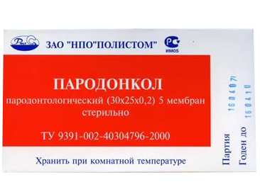 ПАРОДОНКОЛ за счет предотвращения миграции тканей эпителия в костные раны усиливает остеогенез и стимулирует заживление раны в костных тканях и тканях пародонта. Полностью резорбируется.