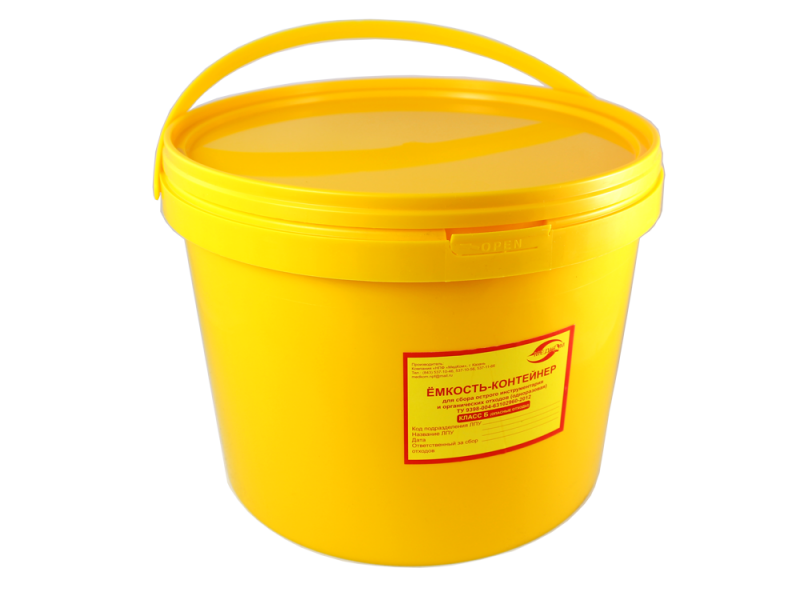 Емкость-контейнер МК-02-"МедКом" класса Б, 10 л для сбора органических отходов, одноразовый, Россия (НПФ "МедКом")