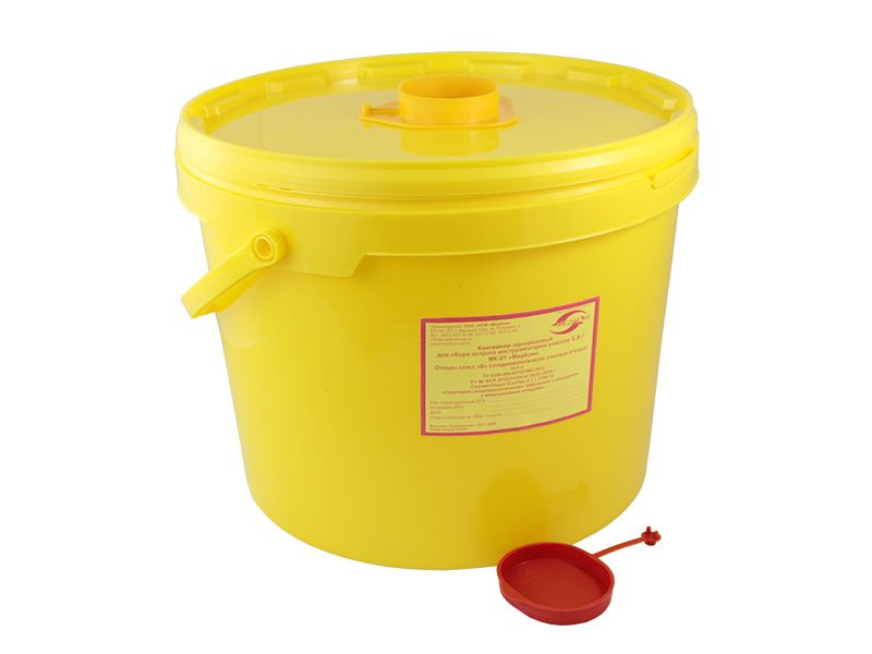 Емкость-контейнер МК-01-"МедКом" класса Б, 10 л для сбора острого инструментария, одноразовый, Россия (НПФ "МедКом")