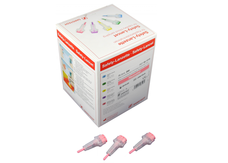 Ланцет атравматический Неонатал, лезвие 1,5 мм, глубина прокола 1,2 мм, розовый, 200 шт/упаковка, Германия (Sarstedt AG &Co.) 85.1019