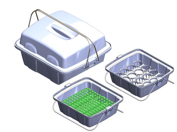 Укладка-контейнер полимерный для доставки проб биологического материала в пробирках и флаконах УКП-01-"КРОНТ" предназначена для транспортировки и переноса пробирок и флаконов с биологическими растворами и другими жидкостями в различных лечебно-профилактических учреждениях.