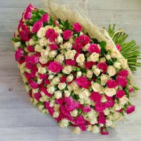 Букет из 39 веточек розовых и кремовых кустовых роз