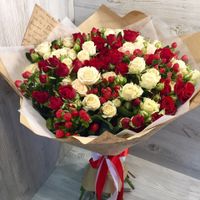 Букет из 29 веточек кремовых и розовых кустовых роз