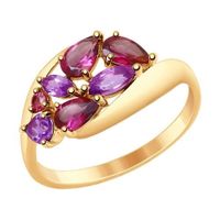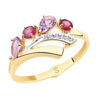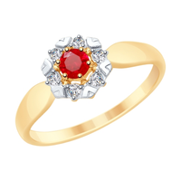 Кольцо из золота с красными корундами и фианитами sokolov арт 052