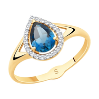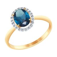 Кольцо из золота с синим топазом и фианитами sokolov арт 069