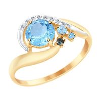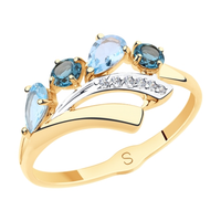 Кольцо из золота с голубыми и синими топазами и фианитами sokolov арт 065